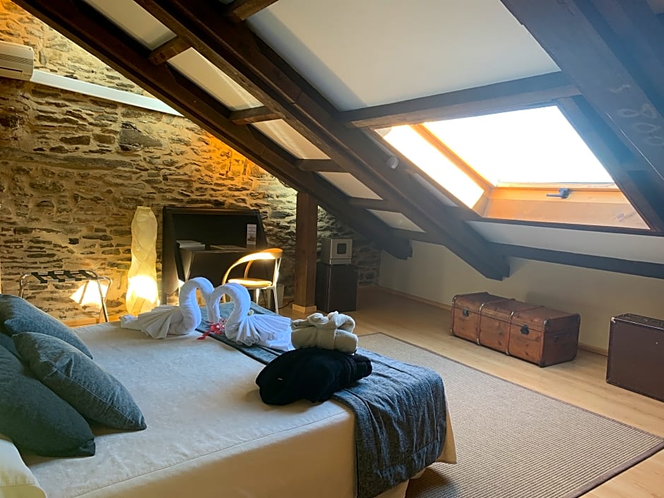 These spacious, air-conditioned suites have bright décor combined with rustic features such as beamed ceilings and exposed stone walls. It is located in the attic and feature a skylight window.